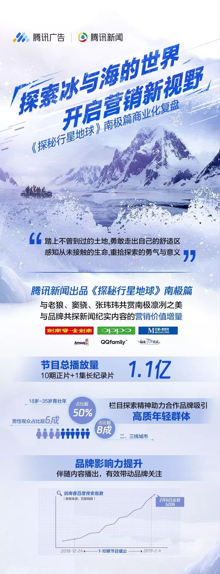 不久前刚刚完美收官的腾讯新闻出品的《探秘行星地球》南极篇,不仅为受众开启了一段奇妙的冰川之旅,更为纪实内容营销带来了一次全新的尝试。